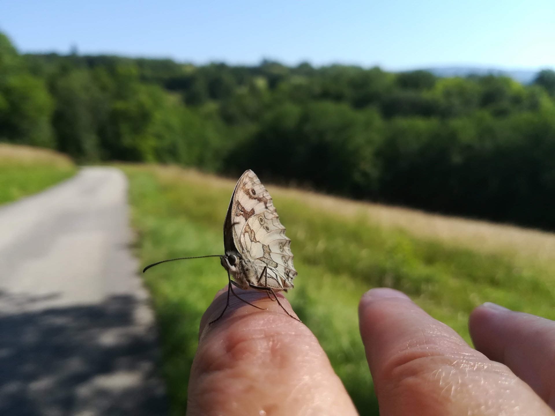 Je m’arrête à chaque oiseau, chaque reptile. Je m’arrête sous les arbres, je les écoute, les regarde, les touche. Je m’arrête pour entendre le grillon, observer le papillon ou respirer le parfum d’une fleur. Je me fige devant le renard qui ne m’a pas encore vue, le chevreuil qui me crie dessus à l’autre bout du champ, le lézard dont j’ai repéré le bruit et que je cherche à voir. Je me dépose devant les paysages immenses et magnifiques, les contemple et reçois leur beauté de plein fouet.